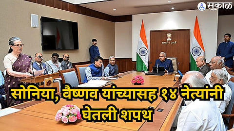 नवी दिल्ली : काँग्रेसच्या नेत्या सोनिया गांधी, रेल्वेमंत्री अश्विनी वैष्णव यांच्यासह चौदा नेत्यांनी गुरुवारी राज्यसभा सदस्यत्वाची शपथ घेतली. राज्यसभा सभापती जगदीप धनकड यांनी नवनिर्वाचित सदस्यांना पद आणि गोपनीयतेची शपथ दिली.