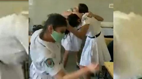 शाळकरी मुलींच्या भांडणाचा व्हिडिओ सोशल मीडियावर व्हायरल होत आहे. व्हायरल झालेल्या व्हिडिओमध्ये विद्यार्थिनी वर्गात एकमेकांशी जोरदार भांडत आहेत आणि एकमेकांचे केस पकडून मारहाण करताना दिसत आहेत. मुलींमध्ये झालेल्या या भांडणाचे कारण अद्याप समोर आलेले नाही.