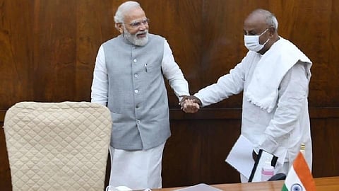 दरम्यान, भाजप स्वबळावर सत्तेत आले. त्यानंतर देवेगौडांनी दिलेलं आश्वासन पूर्ण करण्याची इच्छा व्यक्त केली. JDS नेत्यानं आठवण करून दिली की, विजयानंतर मोदींनी त्यांना वैयक्तिकरित्या शपथविधी समारंभास उपस्थित राहण्यासाठी आमंत्रित केलं होतं. देवेगौडा म्हणाले, समारंभ संपल्यानंतर त्यांनी मोदींशी भेटीची वेळ मागितली, ती त्यांनी मान्यही केली. मोदींची गाडी संसदेच्या व्हरांड्यात पोहोचली, तेव्हा पंतप्रधान मोदी स्वत: माझं स्वागत करण्यासाठी तिथं आले.