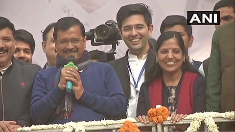 दिल्लीच्या मुख्यमंत्रीपदी अरविंद केजरीवाला तिसऱ्यांदा विराजमान होतील. दिल्लीमधील आपच्या कार्यालयाबाहेर कार्यकर्त्यांकडून जोरदार सेलिब्रेशन करण्यात आले. यावेळी केजरीवाल यांच्यासोबत त्यांच्या पत्नी आणि इतर नेत्यांसोबत उपस्थित होते. हा दिल्लीचा नाही तर भारतमातेचा विजय असल्याचेही अरविंद केजरीवाल यांनी म्हटले आहे.