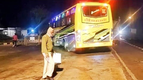 कोगनोळी : येथे राष्ट्रीय महामार्गावर असणाऱ्या कोगनोळी (Kognoli Check Post)कर्नाटक सीमा तपासणी नाक्यावरुन आरटीपीसीआर रिपोर्ट (RTPCR Test ) व कोरोना प्रतिबंधक दोन डोस नसल्याच्या कारणावरून मंगळवारी (ता. 2) रात्री 13 खासगी बसेस परत महाराष्ट्रात पाठवल्या. निपाणी ग्रामीण पोलिस ठाण्याचे उपनिरीक्षक अनिल कुंभार (Anil Kumbhar) यांनी ही माहिती दिली. महाराष्ट्रात (Maharastra) कोरोना रुग्ण वाढत असल्याच्या पार्श्वभूमीवर कर्नाटक (Karnatka) नाक्यावर कडक बंदोबस्त करण्यात आला आहे. या ठिकाणी महाराष्ट्र व इतर राज्यातून येणाऱ्या प्रवाशांचा आरटीपीसीआर रिपोर्ट व कोरोना प्रतिबंधक डोस घेतल्याचे प्रमाणपत्र तपासणी करूनच त्यांना कर्नाटकात प्रवेश दिला जात आहे.
