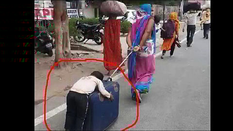 दरम्यान, या व्हिडिओमधील मजूर पंजाबवरून आग्रामार्गे झाशीला पायी निघाले आहेत. लहान मुलगा पायी चालून थकल्यामुळे बॅगवर झोपी गेला. थकल्यामुळे त्याला शांत झोप लागली आहे. सोबतचे प्रवासी पुढे जात असल्यामुळे व आपला प्रवास थांबू नये म्हणून आई ओढत असून, प्रवास चालू ठेवत आहेत.