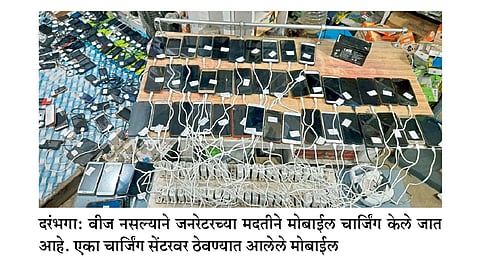 दरभंगा जिल्ह्यात पूरामुळे अनेक भाग पाण्याखाली गेले आहेत. त्यामुळे वीजपुरवठा खंडित झाला असून तो सुरू होण्याची चिन्हे दिसत नाहीत. विशेषत: मोबाईल चार्जिंगसाठी वीजच नसल्याचे संपर्क कसा करावा, असा प्रश्न पडत आहे. यावर नागरिकांनी मार्ग शोधला असून जनरेटरच्या मदतीने मोबाईलचे चार्जिंग केले जात आहे. एका सामान्य मोबाईल चार्ज करण्यासाठी दहा रुपये तर ॲड्राईडसाठी १५ रुपये द्यावे लागतात.