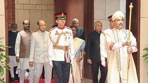 नवी दिल्ली - राष्ट्रपती द्रौपदी मुर्मू यांनी आज अभिभाषणात राष्ट्रीय लोकशाही सरकारच्या (एनडीए) तिसऱ्या कार्यकाळाची रुपरेषा मांडताना आर्थिक सुधारणांची गती कायम राखण्याचे सूतोवाच केले. पेपरफुटीच्या घटनांमधील दोषींवर कारवाईसाठी सरकार कटिबद्ध असल्याची ग्वाही दिली. सोबतच, ‘१९७५ मध्ये लागू केलेली आणीबाणी हा संविधानावरील हल्ल्याचा सर्वांत मोठा काळा अध्याय होता,’ अशा शब्दांत राष्ट्रपतींनी आणीबाणीवर हल्ला चढविला.