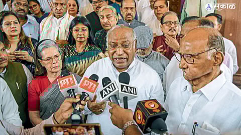 नवी दिल्ली : राज्यसभेत राष्ट्रपती द्रौपदी मूर्मू यांच्या अभिभाषणाच्या धन्यवाद प्रस्तावाच्या चर्चेला उत्तर देत असताना पंतप्रधान नरेंद्र मोदी यांच्या भाषणावर विरोधकांनी आज बहिष्कार टाकत सभात्याग केला. धन्यवाद प्रस्तावाला उत्तर देताना पंतप्रधान मोदी यांनी २६ नोव्हेंबरला संविधान दिन म्हणून साजरा करण्यासाठी काँग्रेसने विरोध केला होता, असे विधान केले. या विधानानंतर विरोधी पक्षनेते मल्लिकार्जुन खर्गे यांनी आक्षेप घेतला. यावर मला बोलू द्यावे, अशी मागणी त्यांनी केली परंतु सभापती जगदीप धनखड यांनी ही मागणी फेटाळून लावली. यावर काँग्रेससह तृणमूल कॉँग्रेस (टीएमसी), राष्ट्रवादी कॉँग्रेस शरदचंद्र पवार (एनसीपी), द्रविड मुनेत्र कळघम (डीएमके), बिजू जनता दल (बीजेडी) या विरोधी पक्षांचे सदस्य आक्रमक झाले. ‘एलओपी को बोलने दो,’ अशा घोषणा ते देत होते. विरोधकांच्या घोषणाबाजीला न जुमानता पंतप्रधान मोदी यांनी भाषण मात्र सुरूच ठेवले. सभापतींनी विरोधी पक्षनेते खर्गे यांना बोलण्याची संधी न दिल्याने काँग्रेसचे सर्व सदस्य जागेवरून उभे राहिले व त्यांनी जोरदार घोषणा दिल्या. या घोषणा सुरू असताना सभापतींनी विरोधकांना शांत राहण्याचे आवाहन केले. परंतु या आवाहनाकडे काँग्रेसच्या सदस्यांनी लक्ष दिले नाही.