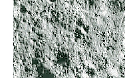 बंगळूर - ‘चांद्रयान-२’च्या ऑर्बिटरवर बसविण्यात आलेल्या उच्चक्षमतेच्या कॅमेऱ्याने टिपलेले चंद्राच्या पृष्ठभागाचे छायाचित्र भारतीय अवकाश संशोधन संस्थेने (इस्रो) आज प्रसिद्ध केले आहे. या छायाचित्रामध्ये लहान आकाराचे खड्डे आणि खडकाळ भाग दिसून येत आहे, असे इस्रोने केलेल्या ट्विटमध्ये नमूद करण्यात आले आहे.
