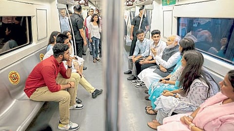 पंतप्रधान नरेंद्र मोदी आज मेट्रोतून प्रवास करत दिल्ली विद्यापीठात पोचले. सकाळी ११ वाजता लोक कल्याण मार्ग मेट्रो स्थानकावर पोचले.