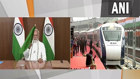 कोलकाता : पंतप्रधान नरेंद्र मोदींनी (Narendra Modi) कोलकाता (Kolkata) येथील हावडा न्यू-जलपाईगुडी वंदे भारत एक्सप्रेसला गांधीनगर राजभवन येथून व्हिडिओ कॉन्फरन्सिंगद्वारे हिरवा झेंडा दाखवला.