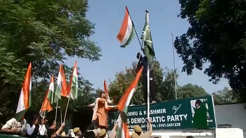 पोलिसांनी चार भाजप कार्यकर्त्यांना या प्रकरणी ताब्यात घेतले आहे. कार्यकर्ते लाल चौकात तिरंगा फडकावण्याचा प्रयत्न करत होते. दरम्यान, नजरकैदेतून सुटका झाल्यानंतर मेहबुबा मुफ्ती यांनी म्हटलं होतं की, जोपर्यंत जम्मू-काश्मीर पुन्हा कलम 370 लागू केले जात नाही, तोपर्यंत त्या कोणताही झेंडा हाती घेणार नाहीत. यावेळी त्यांच्या टेबलवर काश्मीरचा झेंडा ठेवण्यात आला होता.