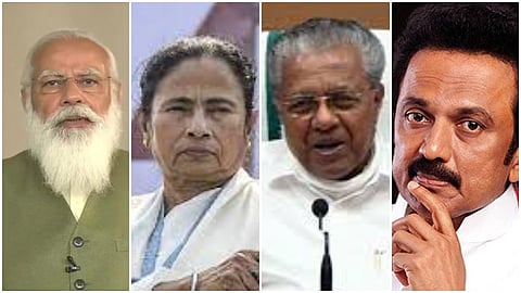 नवी दिल्ली : विधानसभा निवडणुकीत घवघवीत यश मिळवणाऱ्या तृणमूल काँग्रेसच्या अध्यक्षा ममता बॅनर्जी, द्रमकचे अध्यक्ष एम. के. स्टॅलिन आणि एलडीएफचे नेते पिनरायी विजयन या नेत्याचं पंतप्रधान नरेंद्र मोदी यांनी अभिनंदन केलं आहे. यापुढे केंद्र आणि राज्ये मिळून एकत्र काम करु, असं आश्वासनही यावेळी मोदींना या तिन्ही नेत्यांना दिलं.