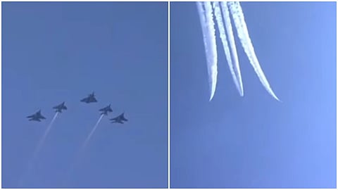 - सुखोई-30 एमकेआय यांनी आकाशात त्रिशूल रेखाटले. या विमानांचे नेतृत्त्व ग्रूप कॅप्टन ए के मिश्रा यांनी केले.
