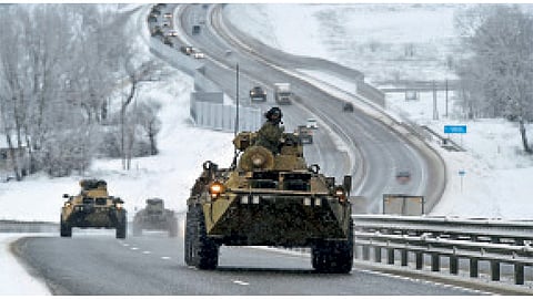 रशिया युक्रेनवर केव्हाही आक्रमण करू शकेल अशी विधाने अमेरिकेच्या अध्यक्षांसह युरोपीय नेत्यांनीही केली. या भीतीने आज भारतासह अमेरिकी, युरोप व आशियाई शेअर बाजारात जोरदार विक्री झाली. ५३१.९५ अंशांनी (३.६ टक्के) घसरलेला निफ्टी १६,८४२.८० अंशांवर बंद झाला. तर १,७४७.०८ अंशांनी (३ टक्के) घसरलेला सेन्सेक्स ५६,४०५.८४ अंशावर स्थिरावला. सेन्सेक्सने आज दुपारी ५७,१९१.९१ अंशांपर्यंत मजल मारली होती, मात्र दीड वाजल्यानंतर युरोपीय शेअरबाजारही पावणेदोन ते तीन टक्क्यांपर्यंत कोसळल्याने सेन्सेक्स, निफ्टीनेही त्यांचेच अनुकरण केले.