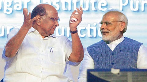 नवी दिल्ली: राष्ट्रवादी काँग्रेसचे (ncp) अध्यक्ष शरद पवार (sharad pawar) यांनी शनिवारी पंतप्रधान नरेंद्र मोदी (narendra modi) यांची दिल्लीतील त्यांच्या निवासस्थानी भेट घेतली. जवळपास तासभर दोन्ही नेत्यांमध्ये चर्चा (discussion) झाली. २०१९ नंतर प्रथमच पवारांनी मोदींची भेट घेतली. (Sharad Pawar meets PM Modi says no politics was discussed-dmp82)