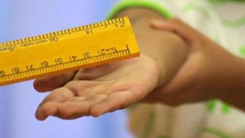 शिक्षक निरागस मुलाला आधी काठीनं मारहाण करतो, त्यानंतर लाकूड तुटलं तरी शिक्षकाचा राग शांत होत नाहीय.