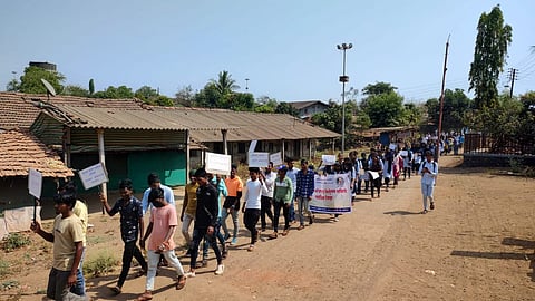 नाशिक : दोन वर्षांच्या कोरोना (Corona) महामारीने उद्ध्वस्त जनजीवन हळुहळू पुर्वपदावर येत असताना, यूक्रेन आणि रशियात (Russia Ukraine War) युद्ध पेटले आहे. युद्धात अण्वस्त्र (Nuclear weapon) वापराचे इशारे दिले जात असल्याने सजीवसृष्टीला धोका निर्माण होईल. त्यामुळे दोन्ही देशातील युध्द त्वरीत थांबावे. यासाठी करंजाळी (ता. पेठ) येथे महाराष्ट्र अंधश्रध्दा निमूर्लन समितीतर्फे मूक मोर्चा काढण्यात आला.