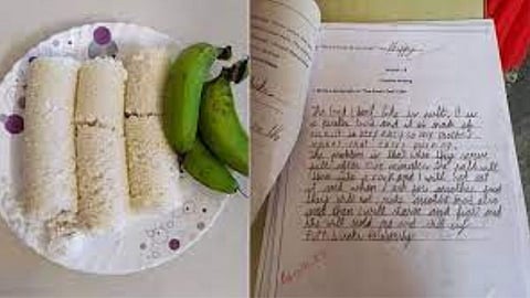 एका ट्विटर युझरने मुलाच्या उत्तरपत्रिकेचा एक फोटो शेअर केला आहे. प्रश्नपत्रिकेत या मुलाला त्याला आवडत नसलेल्या पदार्थाविषयी प्रश्न विचारला होता. त्यात त्याने आपल्या मनातली खंत व्यक्त केली. त्याने लिहिलेय, आई रोज नाश्त्यासाठी पुट्टू बनवते. रोज तेच काय खायचं? कारण त्याला रोज तोच पदार्थ खाणं आवडत नाही. तसेच त्याने पुट्टू खाण्यास अनेकदा नकार दिल्यामुळे त्याचे त्याच्या आईसोबतही बिनसले आहे. आई वैतागली आहे.