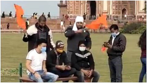 ताजमहल परिसरात तैनात असलेले सुरक्षा कर्मचारी काही करण्याआधीच, या हिंदूवादी कार्यकर्त्यांनी ताजमहलसमोर भगवा भडकवत असल्याचा व्हिडिओ सोशल मीडियावर व्हायरल केला होता. व्हिडिओमध्ये स्पष्ट दिसतंय की हिंदूवादी नेते ताजमहल समोर भगवा झेंडा फडकावत आहेत, आणि जय श्री रामचे नारे देत आहेत.