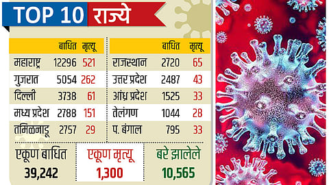 गुजरात - त्यानंतर सर्वांत जास्त प्रमाणात कोरोना प्रभावित राज्यांमध्ये समावेश झालेल्या गुजरातमधील रुग्णसंख्या ५६९२ व मृतांचा आकडा २३६ वर पोहोचला आहे.