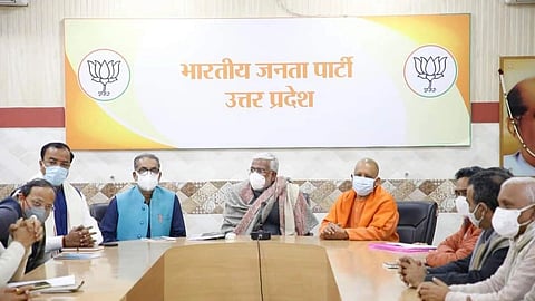 उत्तर प्रदेशमध्ये निवडणुकांचं बिगूल वाजलं असून, सर्व पक्षांनी प्राचारासाठी कंबर कसली आहे. प्रचारासाठी भाजपनेही जोरदार तयारी सुरू केली असून, बैठकांवर बैठका सुरू आहेत. निवडणूक आयोगानं निवडणुकांच्या तारखा जाहीर करतानाच कोरोना संसर्गाचं आवाहन असल्यानं सर्व पक्षांना कोरोना प्रतिबंधक नियमांचं पालन करण्याचं आवाहन केलं होतं. त्यातच आता भाजपसारख्या मोठ्या पक्षाच्या प्रचाराच्या राज्यस्तरीय बैठकीतील नेता कोरोनाबाधित झाल्यानं चिंता वाढली आहे.