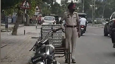 चंदीगड (Chandigarh)- अंडे चोरल्याप्रकरणी (stealing eggs) पंजाबमधील एका हेड कॉन्स्टेबलला निलंबित (Punjab cop suspended) करण्यात आले आहे. या घटनेचा एक व्हिडिओ सोशल मीडियावर व्हायरल होत आहे. पोलिस एका गाड्यावरील अंडे चोरत असल्याचं व्हिडिओमध्ये दिसत आहे. पोलिसाचे नाव प्रितपाल सिंग असून त्यांची पोस्टिंग पंजाब फतेगड साहेब पोलिस स्टेशनमध्ये होती. पंजाब पोलिसांनी ट्विट करुन या पोलिसाला निबंलित करण्यात आल्याचं सांगितलंय. (video goes viral Punjab cop suspended for stealing eggs in Chandigarh)