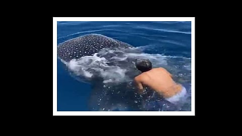दुबई: एक युवक उडी मारून व्हेल माशाच्या पाठीवर बसला आणि समुद्रात सफर करू लागला. संबंधित व्हिडिओ सोशल मीडियावर व्हायरल होत असून, धाडस आणि कौतुक अशा पद्धतीने नेटिझन्स प्रतिक्रियांच्या माध्यमातून व्यक्त होत आहेत.