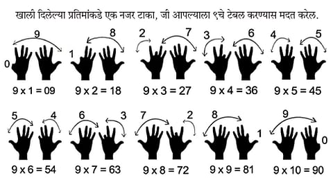 अशा प्रकारे, आपल्याला बोटांनी पहात उत्तर थेट ९x४ = ३६ (छत्तीस) मिळेल.