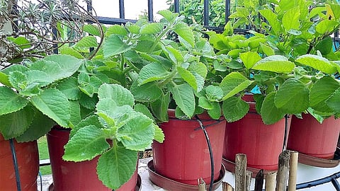 पानओवा म्हणून एक छोटे झुडूप असते. याची पाने गोलाकार, मांसल अशी असतात. या पानांना ओव्याचा वास येतो म्हणून या झुडपाला पानओवा असे म्हणतात. याच्या पानांची भजी सुरेख लागतात. काही प्रांतांमध्ये याची भाजीसुद्धा केली जाते. याचे औषधी उपयोग पाहता पानओव्याचे झाड कुंडी, परसबागेत लावणे चांगले होय. याची छोटी फांदी पावसाळ्यात जमिनीत लावली तर त्यापासून बघता बघता नवीन झाड तयार होते.