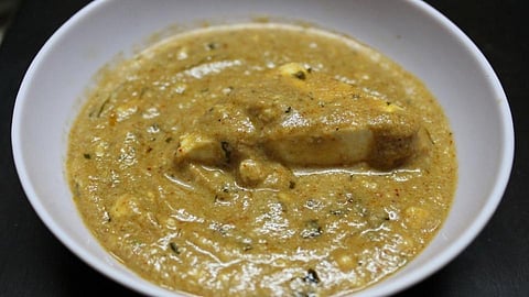 सुरुवातीला पनीर स्वच्छ धुऊन घ्या आणि त्याला क्यूब्स मध्ये कट करून घ्या. त्यावर थोडे मीठ आणि काळी मिरची शिंपडा. एका पॅनमध्ये तेल गरम करून घ्या आणि हे त्यावरत मंद आचेवर हलका ब्राऊन होईपर्यंत हे पनीर क्यूब्स तळून घ्या. टोमॅटो, आलं चिरून घ्या आणि एका बाजूला ठेवा. मिक्सरचे भांड्यात थोडे पाणी घालून यामध्ये एक चुटकी मीठ, हळद पावडर घाला. आता एका पॅनमध्ये तूप गरम करा त्यामध्ये साबुत लाल मिरची फ्राय करा. सोबत टोमॅटो पेस्ट घाला. यामध्ये मीठ घालून मिश्रण शिजवून घ्या. त्यानंतर दह्याचे मिश्रण घाला. पाणी घालून हे उकळून घ्या. त्यानंतर नरम मसाल्यात मिश्रणात पनीर क्युब्स घाला. तुमची ही रेसिपी तयार आहे.