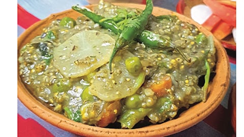 पारंपारिक पद्धतीत बाजरी भाताप्रमाणे किंवा खिचडीप्रमाणे शिजवून दूध, ताक किंवा कढीसोबत खाल्ली जाते. आपण या पारंपारिक रेसिपीमध्ये थोडा बदल करून बाजीरीच्या ठोंबऱ्याला या सुगीतील रंगीबेरंगी भाज्यांसोबत बनविणार आहोत.