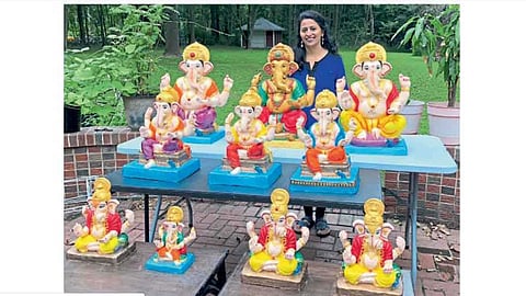 रोज सकाळी-संध्याकाळी शेजारच्या दोन-तीन कुटुंबांतील लोकांना सोबत घेऊन तालासुरात आरतीही होऊ लागली. गेल्या वर्षी त्यांनी स्वतःसाठी आणि इतर परिचितांसाठी मूर्ती तयार केल्या. साधारणपणे २० ते २५ भारतीयांनी या मूर्ती नेऊन गणेशोत्सवाचा आनंद घेतला. यंदा त्यांनी तीस ते पस्तीस सुबक मूर्ती तयार केल्या आहेत. महिनाभर त्यांचे हे काम घरातल्या घरात चालू आहे. आता त्यांच्या मूर्ती तयार झाल्या आहेत. अंगणातच त्यांनी हा स्टॉल मांडला आहे. नुसत्या मूर्तीच नव्हे; तर खीर, मोदक, करंज्यांसाठी लागणारे सर्व साहित्यही आणले आहे. गणेशोत्सवाचे दहा दिवस म्हणजे एक वेगळ्या आनंदाची अनुभूती असते. त्यामुळे अमेरिकेत राहत असलो; तरी आपल्या परीने या सणाचा आनंद घेण्यासाठी त्यांची धडपड आहे.