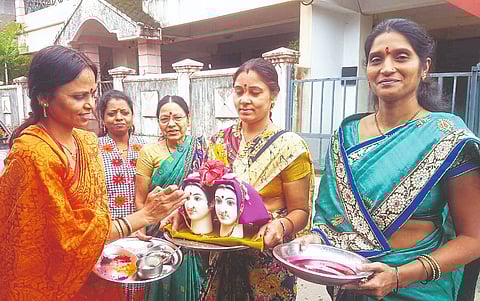 दरम्यान, गौरी बसविण्यासाठी महिलांची सकाळपासून लगबग सुरू होती. सुवासिनी प्रत्येकीच्या घरात जाऊन गौरीची पूजा करीत होत्या. त्यानंतर या गौरींना सजविण्यासाठी महिलांची धांदल उडाली होती. भरजरी साडी नेसविलेल्या गौरींना दागिन्यांनीही सजविले जात होते. आज महिलांच्या या सणामुळे फुलांचे दर वाढले होते. मोगऱ्याचा वितभर एकेरी गजरा चक्क दहा रुपयांना विकला जात होता. तर गौरीसाठीची शेवंतीची वेणी २० ते ३० रुपयांना विकली जात होती. तसेच आगमनादिवशी गौरीला भाजी-भाकरीचा नैवद्य दाखविला जातो. त्यामुळे शेपू आणि भोपळ्याच्या पानांची भाजी मुबलक प्रमाणात विक्रीस आली होती. शेपूची पेंडी दहा रुपयांना विकली जात होती.