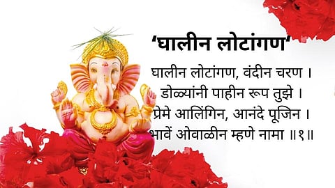 ‘घालीन लोटांगण ‘ ही प्रार्थनाही सर्वांच्या पाठ असते. या प्रार्थनेत एक लय आहे. शब्दांना मधुर नाद आहे. प्रत्येक आरतीची रचना कोणी केली आहे ते आरतीतील शेवटच्या ओळींवरून सहज लक्षात येते. परंतु ‘ घालीन लोटांगण ‘ ही रचना कोणी केली आहे ते सहसा कोणाच्या लक्षांत येत नाही. कारण त्या पाच कडव्यांमध्ये काही कडवी मराठीत आहेत तर काही संस्कृतमध्ये आहेत. ही प्रार्थना कोणी एका कवींनी केलेली नाही.या पाचही कडव्यांचे रचनाकार हे वेगवेगळे आहेत. तसेच या सर्व कडव्यांच्या रचना वेगवेगळ्या कालखंडात केल्या गेल्या आहेत. आणखी एक महत्त्वाची गोष्ट म्हणजे श्रीगणेश पूजन व आरती झाल्यानंतर ‘ घालीन लोटांगण ‘ ही प्रार्थना म्हणत असलो तरी या प्रार्थनेतील कोणताही भाग हा केवळ गणेशाला उद्देशून नाही.