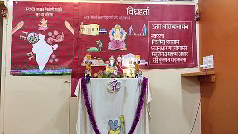 देखाव्याच्या संकल्पनेविषयी पद्माकर पाठकजी म्हणाले, काेरोनाच्या काळात यंदाचा गणेशोत्सव अत्यंत साधेपणाने साजरा होणार असल्याचे स्पष्ट झाले आणि मग आम्हीही दर वर्षी प्रमाणे विस्तृत मांडणी करताना सजावटीचे लहान रूप साकारायचे ठरवले.