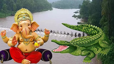 खेड : खेड शहरातील जगबुडी नदीमध्ये (Jagbudi River) अनेक मगरींचा (Crocodile) वावर असल्याने दीड दिवसाचे गणपती विसर्जन करताना येथील विसर्जन कट्टा मंडळाच्या सदस्यांना आपला जीव मुठीत धरून गणरायाचे विसर्जन करावे लागत होते. या मगरींना पळवून लावण्यासाठी नदीमध्ये फटाक्यांचे बॉम्ब फोडून त्यांना पळवून लावावे लागले.