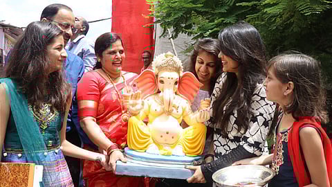 नाशिक - "गणपती बाप्पा मोरया'चा जयघोष करत आज भाविकांनी घरोघरी श्रींच्या मूर्तीची प्रतिष्ठापना केली. काल पावसाने ओढ दिली असतांना आज सकाळपासून पावसांच्या सरींनी भाविकांचा उत्साह वाढविला. घरातील चिमुरड्यांपासून तर ज्येष्ठ मंडळीमध्ये गणशोत्सवानिमित्त उत्साहाचे वातावरण होते. वाजत-गाजत, धुम धडाक्यात बाप्पांचे आगमन झाले असून पुढील दहा दिवस भक्तीभावाने गजाननाची आराधना केली जाणार आहे.