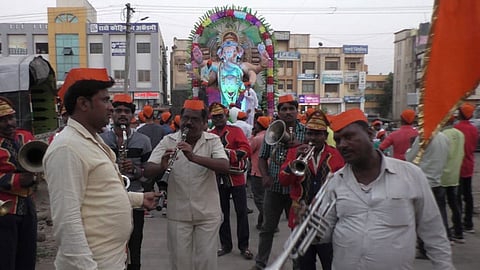 पुणे - ‘गणपती बाप्पा मोरया, मंगलमूर्ती मोरया’च्या जयघोषात, डीजे व डॉल्बीला फाटा देत ढोल- ताशे, सनई, टाळ-मृदंग आणि लेझीमच्या गजरात जिल्ह्यात ठिकठिकाणी गुरुवारी गणरायाचे आगमन झाले. जिल्ह्यातील गणेश मंडळांनी सकाळी नऊपासूनच मिरवणुकीद्वारे गणपती बाप्पाच्या मूर्ती आणत त्यांची प्रतिष्ठापना करण्यास सुरवात केली. दुपारी दीडपर्यंत प्रतिष्ठापनेचा मुहूर्त असल्याने त्यापूर्वी प्रतिष्ठापना करण्यास अनेक मंडळांनी प्राधान्य दिले.