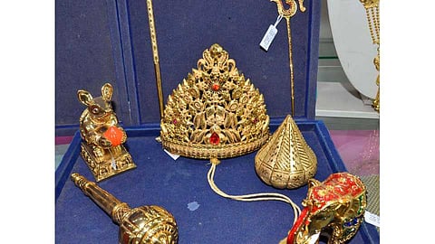 सार्वजनिक मंडळांच्या सजावटीला तोडीस तोड सजावट अनेक जण घरोघरी करतात. भक्तांच्या सर्व मनोकामना पूर्ण करणाऱ्या बाप्पाची श्रीमंतीही तितकीच मनात ठसली पाहिजे, याची काळजी घेतात. त्याला सर्वांगाने दागिन्यांनी मढवून टाकतात. त्याच्यासाठी दागिन्यांची विविध मॉडेल्स बाजारात आली आहेत. सोन्याचा नेकलेस, शेला, कमरपट्टा हे त्यापैकीच काही दागिने. नेत्रदीपक चकाकणारा शेला आणि त्याच्या दोन्ही टोकांना मोत्याच्या झालरींमुळे बाप्पाचे प्रसन्न रूप आणखीच खुलते. त्याच्या व्यक्तिमत्त्वाला राजेशाही थाट मिळतो. जडवलेल्या रंगीबेरंगी खड्यांमुळे नेकलेसची झळाळी खुलून येते. मस्तकावर किरीट, कानात बाळ्या, सोंडेवर सोंडपट्टी, कानांचा विशालपणा खुलविण्यासाठीचे कान, मस्तकावर झुलणारे छत्र-चामर हेही हवेच. पूजेसाठी सोन्या-चांदीच्या दुर्वाही आहेत. शिवाय गदा, आरतीचे ताट, मोदकाचा प्रसाद हे सगळेही सोन्या-चांदीचेच. पुजेची सुपारी, जास्वंदाचे फुल, खाऊचे पान यांचीही सोय आहे. एवढेच नाही, तर बाप्पाच्या सेवेत अहोरात्र असणारा उंदीरमामाही सोन्याने झळाळून निघाला आहे. सोबत देखणे हत्तीही आहेत.