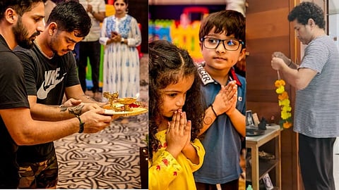 मास्टर ब्लास्टर सचिन तेंडुलकर विरेंद्र सेहवागसह युईमध्ये असलेल्ल्या मुंबई इंडियन्स आणि चेन्नई सुपर किंग्जच्या मंडळींमध्ये गणेशोत्सवाची धूम पाहायला मिळाली.