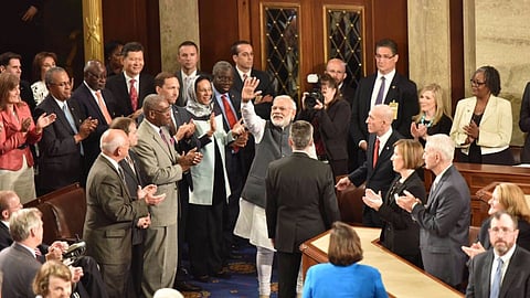 पंतप्रधान मोदींच्या भाषणावेळी कमीत कमी १५ वेळा अमेरिकेतील खासदारांनी उभं राहून टाळ्या वाजवल्या. तर, मोदींच्या एकूण भाषणादरम्यान एकूण ७९ वेळा टाळ्या वाजल्या. पंतप्रधान मोदींचे भाषण संपल्यानंतरही बराच वेळ अमेरिकेतील खासदार उभं राहून टाळ्या वाजवत होते.