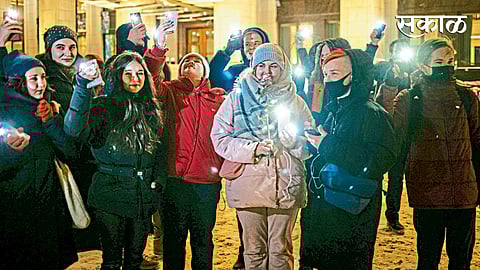 मॉस्को - राजकीय विरोधक ॲलेक्सी नवाल्नी यांना पाठिंबा देण्यासाठी रशियातील असंख्य नागरिकांनी व्हॅलेंटाइन डेचे निमित्त साधले. समर्थकांनी मोबाईलचा फ्लॅशलाईट लावून किंवा मेणबत्त्या प्रज्ज्वलित करून परिसर उजळून टाकला.