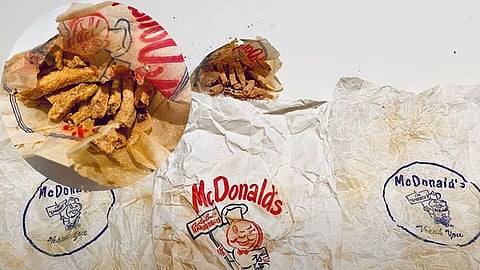 रॉब आणि ग्रेसी हे जोडपे इलिनॉयच्या क्रिस्टल लेकमध्ये राहतात. ते दोघेही घराचे नूतनीकरणाचे काम करत होते. यादरम्यान बाथरूमच्या भिंतीवरून सिमेंटचा तुकडा तुटलेला रॉबला दिसला तेव्हा त्याला त्याच्या आत कागदाचे पॅकेट सापडले. त्याने हे पॅकेट बाहेर काढले आणि पत्नी ग्रेसीला दाखवले.पॅकेटवर मॅक्डोनाल्ड लिहीले होते आणि त्यात फ्रेंच फ्राईजही होते. त्यांनी अलीकडेच Reddit याबाबत माहिती शेअर केली जी खुप आश्चर्यकारक आहे.