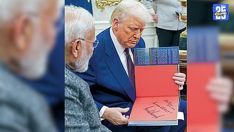वॉशिंग्टन : अमेरिकेचे अध्यक्ष डोनाल्ड ट्रम्प आणि पंतप्रधान नरेंद्र मोदी यांची मैत्री जगजाहीर आहे. या मैत्रीच्या आठवणी संकलित केलेले ‘अवर जर्नी टुगेदर’ हे कॉफी टेबल बुक ट्रम्प यांनी मोदी यांना सप्रेम भेट दिले. दोन्ही नेत्यांची भेट भारतीय प्रमाणवेळेनुसार शुक्रवारी पहाटे व्हाइट हाऊसमध्ये झाली.
