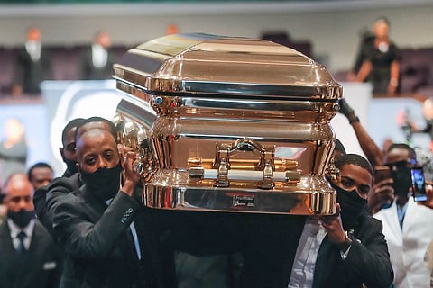 जॉर्ज फ्लॉइड याचा मृतदेह सोनेरी शवपेटीतून नेण्यात आला. त्यासाठी खास शवपेटी तयार करण्यात आली होती. पॉप संगिताचा सम्राट मायकल जॅक्सन आणि सुप्रसिद्ध गायक जेम्स ब्राऊन यांच्यानंतर सोन्याच्या शवपेटीतून शेवटचा प्रवास करणारा फ्लॉइड हा तिसरा ठरला. मायकल जॅक्सनच्या शवपेटीची किंमत 25 हजार डॉलर इतकी होती. जॉर्जच्या शवपेटीची किंमतही अंदाजे 25 ते 30 हजार डॉलर असल्याचं सांगण्यात येत आहे. भारतीय चलनानुसार शवपेटीची किंमत 18 ते 22 लाख रुपये इतकी होते. जॉर्जच्या अंत्ययात्रेसह त्याच्या कुटुंबाला मदतीसाठी जगभरातून अनेकांना पेसै दान केले आहेत. त्यातूनच हा खर्च करण्यात आला आहे.