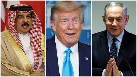 डोनाल्ड ट्रम्प यांनी शुक्रवारी इस्त्राईलचे पंतप्रधान बेंजामीन नेतन्याहू आणि बहारिनचे राजे हमाद बीन इसा अल खलिफा यांच्याशी फोनवरुन चर्चा केली. या तीन नेत्यांनी संयुक्त निवेदन जाहीर केले असून कराराची घोषणा केली. डोनाल्ड ट्रम्प यांनी ट्विट करुन 'आणखी एक ऐतिहासिक घटना' असं म्हटलंय.
