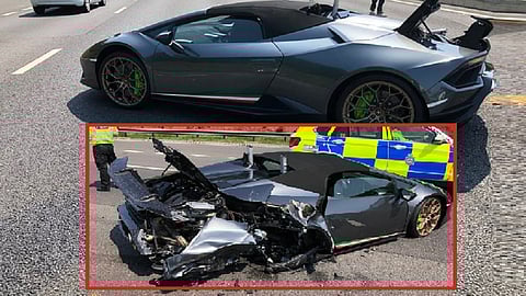 फोटो शेअर करताना पोलिसांनी म्हटलं आहे की, M1 वेस्ट यॉर्कशायरमध्ये लम्बोर्गिनी अचानक बिघडल्यानं रस्त्यातच लॉक झाली. तेव्हा एका गाडीची लम्बोर्गिनीला जोराची धडक बसली. लम्बोर्गिनीचे फोटो सोशल मीडियावर यानंतर तुफान व्हायरल झाले आहेत.