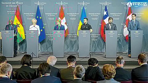 ऑबुर्जन (स्वित्झर्लंड) : युद्धग्रस्त युक्रेनमध्ये शांतता निर्माण करण्यासाठी कोणते प्रयत्न करायचे, यावर चर्चा करण्यासाठी स्वित्झर्लंडमध्ये आज प्रमुख जागतिक नेत्यांची बैठक झाली. या बैठकीमध्ये युक्रेनचा सहभाग असला तरी रशियाची उपस्थिती नसल्याने कोणताही तोडगा निघण्याची शक्यता नसल्याचे तज्ज्ञांचे म्हणणे आहे.