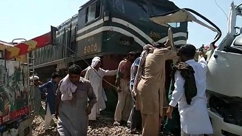 पाकिस्तानातील शेखूपुरा येथे रेल्वे क्रॉसिंगवर एका कॉलेज व्हॅनला ट्रेनची धडक बसलीय.