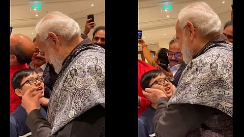 एका लहान मुलीने पंतप्रधान मोदींना एक चित्र भेट दिलं. त्यावेळी मोदी या चित्रपटाकडे पाहतच राहिले. त्यांनी या मुलीचं कौतुकही केलं. त्याचबरोबर त्यांनी एका लहान मुलाचं गाणं ऐकत त्याचं कौतुकही केलं. भारतीय वंशाच्या ह्या मुलाने देशभक्तीपर गीत गायलं. तो गाणं गात असताना पंतप्रधान मोदींनी चुटकी वाजवत त्याला साथही दिली.