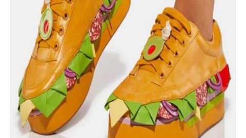 डेली सँडविच प्लॅटफॉर्म स्नीकर्स (Deli Sandwich Platform Sneakers) नावाने ओळखले जाणारे हे शूज सँडविचसारखे दिसतात. याला बेज रंगाच्या बन एरिया आणि थ्रीडी वेगन लेदरसोबत, सॅलेमी, लेट्यूस, चीज आणि कांदाही भरून बनवले गेलं आहे. हे शूज पाहिल्यानंतर तुम्हाला बर्गर किंवा सँडविच खावासा नक्की वाटेल.