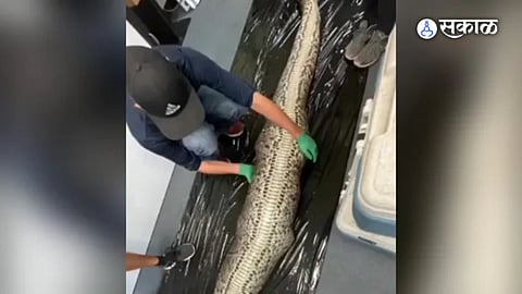 मुंबई - अमेरिकेतील फ्लोरिडामध्ये बर्मीज अजगराच्या पोटात एक महाकाय मगर आढळून आली आहे. मध्यंतरावरील त्रासदायक फुटेजमधून ही बाब उघड झाली आहे. 'न्यूजवीक'ने दिलेल्या माहितीनुसार, 18 फुटी अजगराला नॅशनल पार्कच्या कर्मचाऱ्यांनी पकडले होते. मात्र काही वेळातच अजगराचा मृत्यू झाला. shocking video of 5 foot alligator found inside burmese python